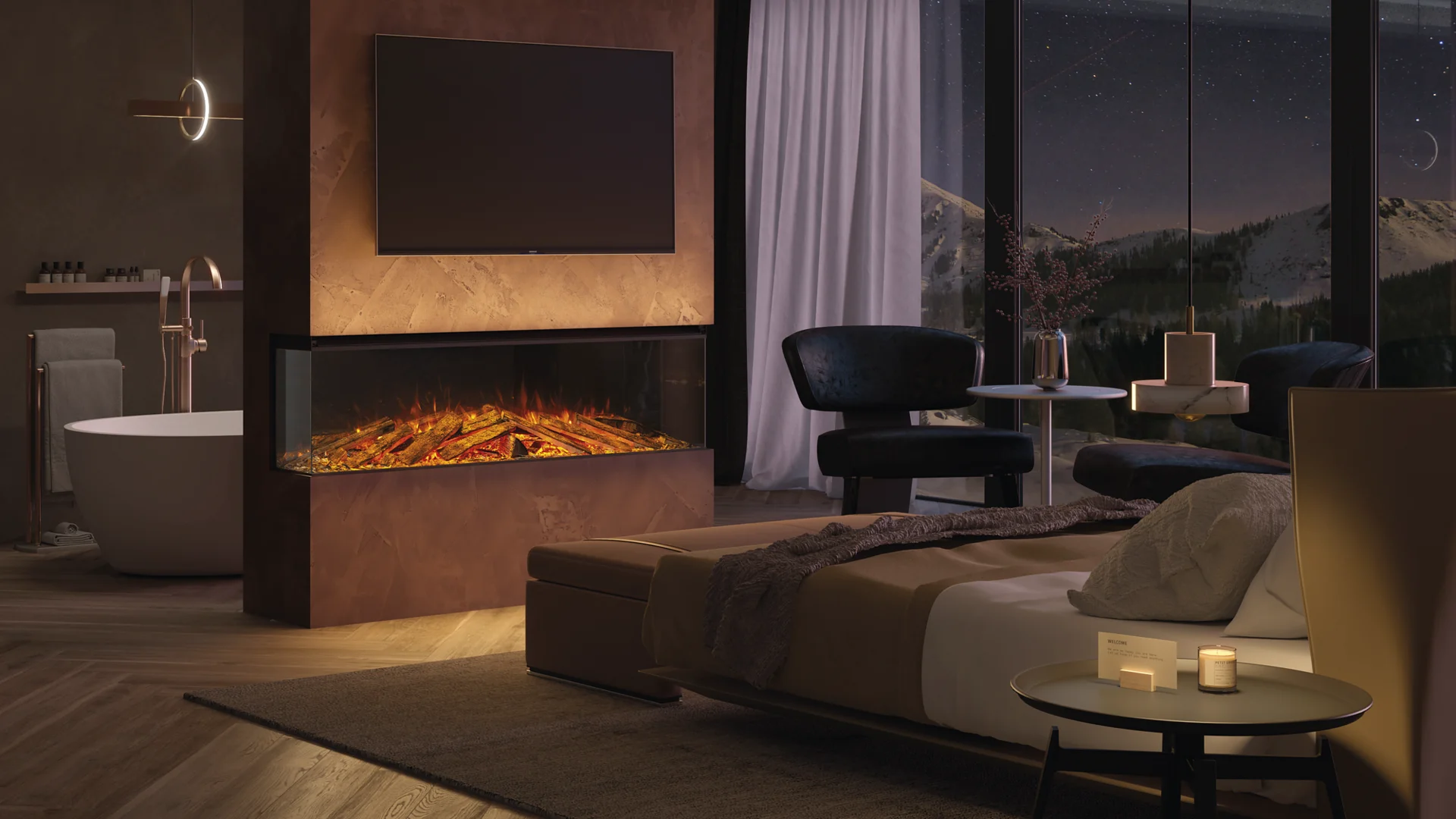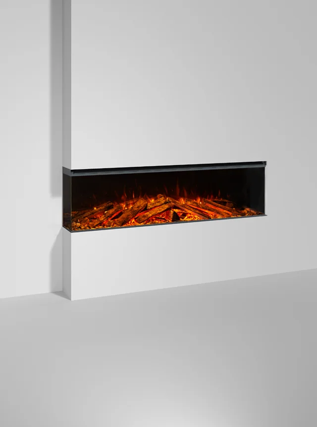 LUMEN 1600 è il protagonista indiscusso della stanza. Può essere installato a parete con cornice o incassato, scegliendo tra tre configurazioni: frontale, angolare o panoramica. Ogni prospettiva esalta la fiamma, regalando un’esperienza immersiva e coinvolgente.