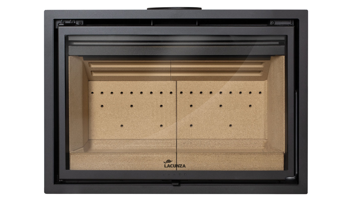 Nuovo inserto a legna di Lacunza “Nive 700 Star” da 9,5kW di potenza nominale. Alta capacità di carico, grande visione del fuoco e una turbina centrifuga. Camera di combustione in vermiculite.